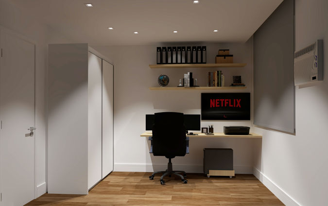Ao nos procurar, o cliente tinha um pedido especial: um local para expor os livros e objetos que herdou. Além de um local para receber seus clientes com estilo contemporâneo e moderno. Então partimos de duas ideias: criar um espaço acolhedor de trabalho e confortável para os clientes.